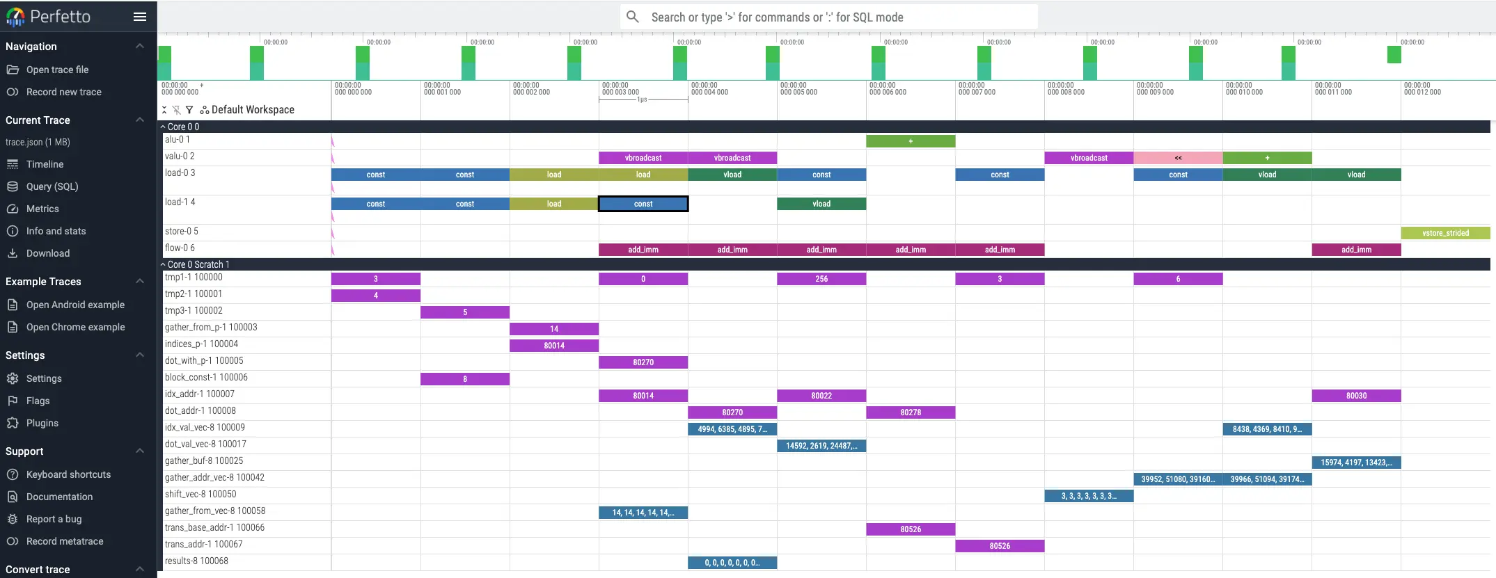 I built a Python simulator for a fake accelerator with characteristics that resemble TPUs. Candidates optimize code running on this machine, using a hot-reloading Perfetto trace that shows every instruction, similar to the tooling we have on Trainium.