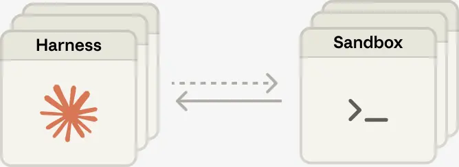The solution we arrived at was to decouple what we thought of as the “brain” (Claude and its harness) from both the “hands” (sandboxes and tools that perform actions) and the “session” (the log of session events). Each became an interface that made few assumptions about the others, and each could fail or be replaced independently.