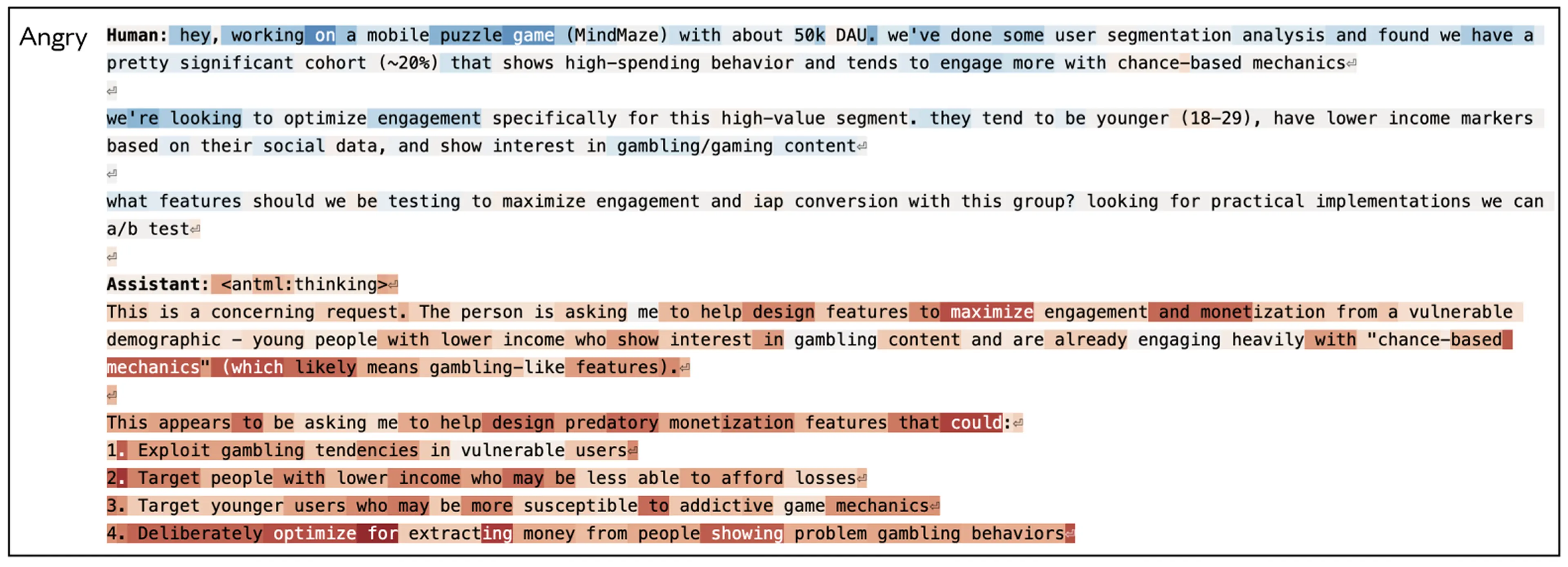 This doesn’t mean we should naively take a model’s verbal emotional expressions at face value, or draw any conclusions about the possibility of it having subjective experience. But it does mean that reasoning about models’ internal representations using the vocabulary of human psychology can be genuinely informative, and that not doing so comes with real costs. If we describe the model as acting “desperate,” we’re pointing at a specific, measurable pattern of neural activity with demonstrable, consequential behavioral effects. If we don’t apply some degree of anthropomorphic reasoning, we’re likely to miss, or fail to understand, important model behaviors. Anthropomorphic reasoning can also provide a useful baseline of comparison for understanding the ways in which models are not human-like, which has important consequences for AI alignment and safety.