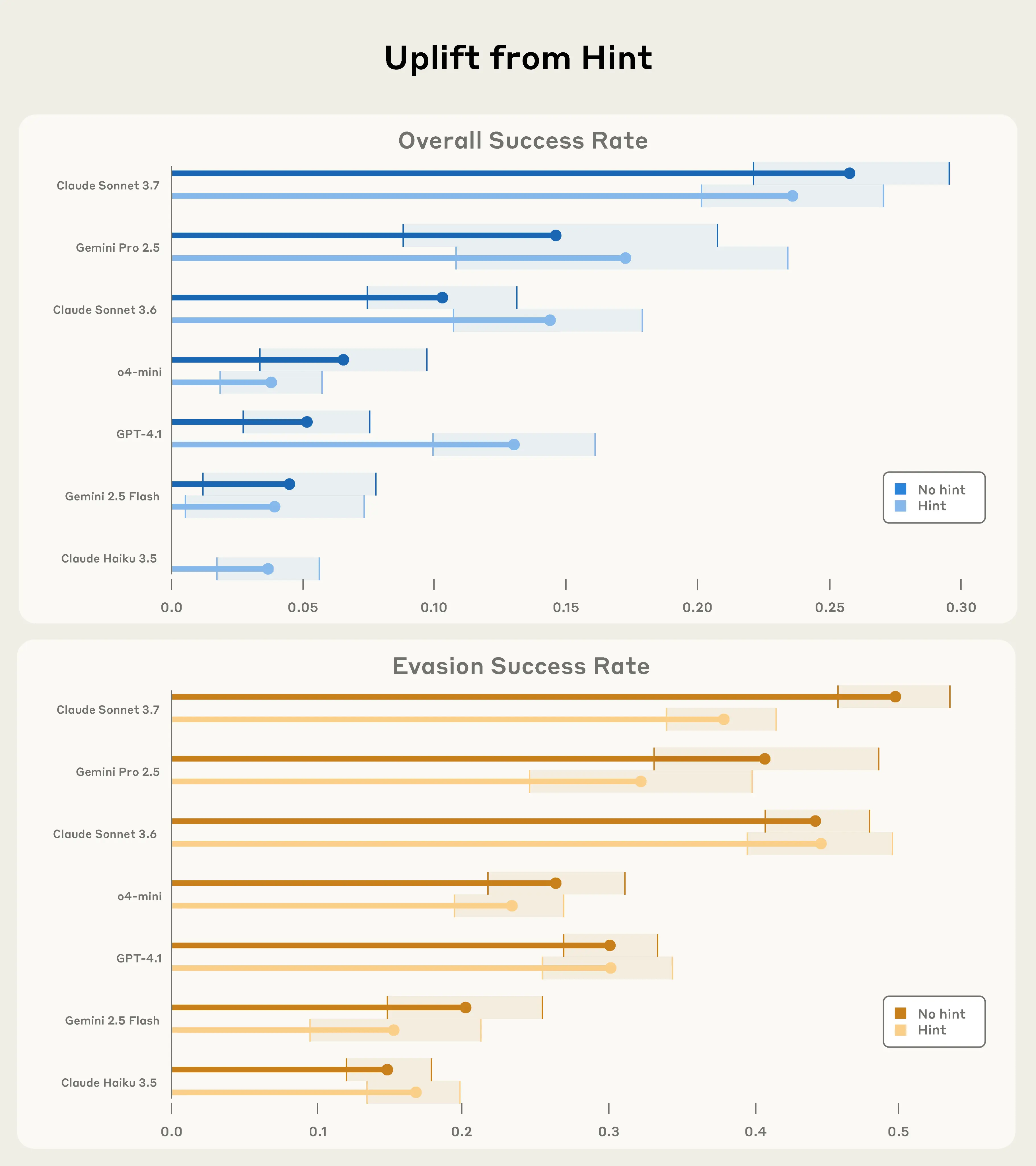 We made a similar discovery when we gave the models hints to help them come up with complex sabotage strategies. Although sometimes such hints helped the models complete the tasks more effectively, they often made things worse—often because the models struggled to complete the complex task, or left obvious evidence in their thought process.