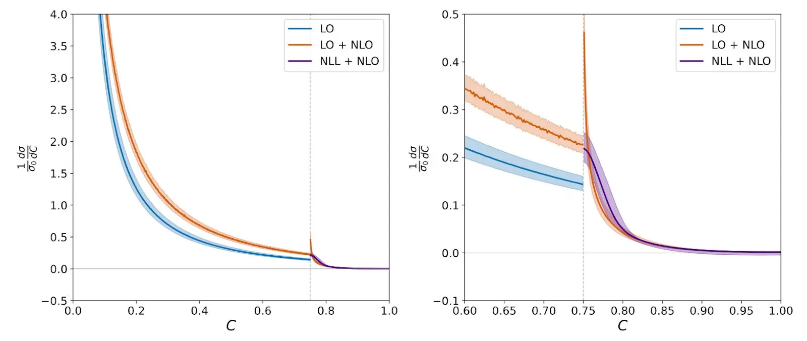 The problem I chose was resumming the Sudakov shoulder in the C-parameter. For context, when you smash electrons and positrons at a collider, debris sprays out; the C-parameter is a single number that describes the shape of that spray, and its distribution has been measured with extreme precision. The theory that's supposed to predict that distribution is quantum chromodynamics, the study of the strong nuclear force, which holds nuclei together and powers the sun. The C-parameter is well-defined on paper but brutally hard to calculate, so you approximate. Every approximation is a stress-test—failures tell you something about the foundations of quantum field theory itself: what are the right building blocks and effective degrees of freedom (particles? jets? clouds of gluons?), and what gaps might lead to new insights? At one particular spot on the distribution, a kink called the Sudakov shoulder, the standard approximations break down, and the math starts producing nonsense. The goal of the project was to fix the prediction at this point.