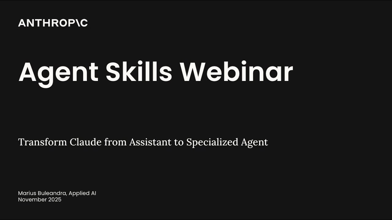 Learn how to turn Claude from a conversational assistant into a specialized agent that executes complex, repeatable workflows tailored to your specific needs. Join Marius Buleandra from Anthropic's Applied AI team as he shares how Agent Skills can automate tasks that used to take hours—from customer prep work to enterprise document creation—and shows you how to build your own custom skills.
